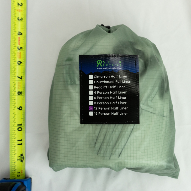 The top of the liner has toggles that insert through hang loops on the interior of the shelter. The bottom of the liner has linelocs that accept cordage that is tied to the stake loops.