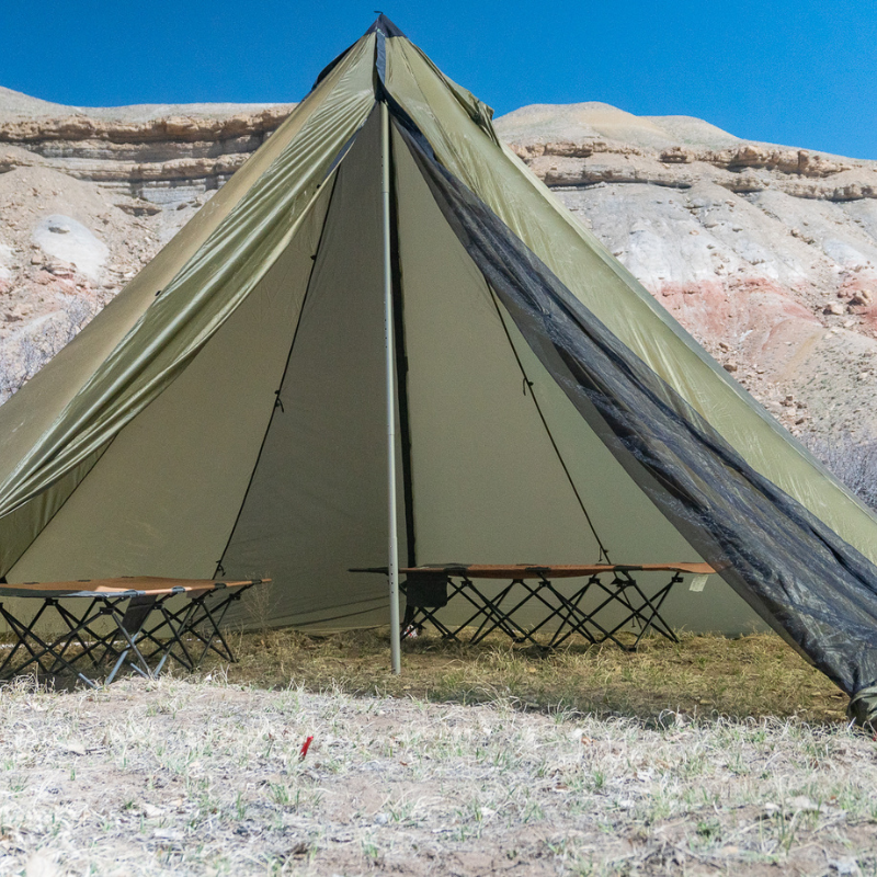 The 12 Person Lightweight Tipi is roomy, storm worthy and offers stand up & walk around space. A truly sustainable backcountry home, great for family camping, late season hunting, winter adventures or a base camp. It is capable of sleeping up to 12 with minimal gear, or 6 people with a stove. Handmade in Grand Junction, CO.