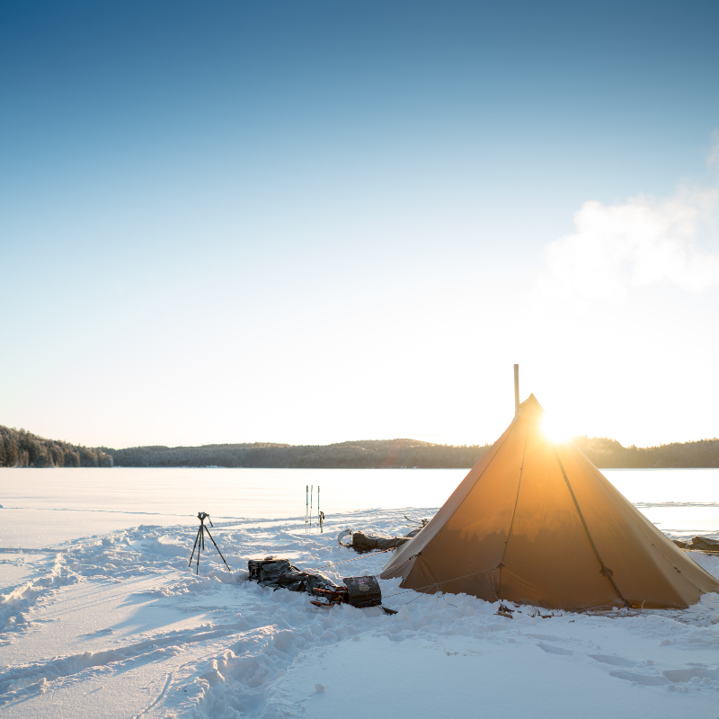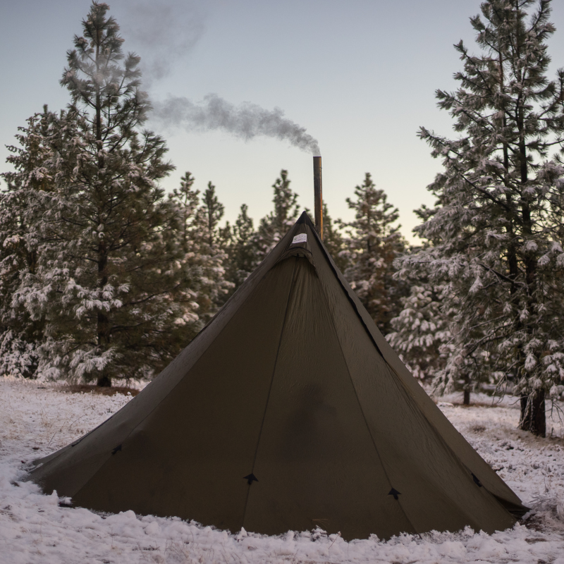 The Six Person hot tent bundle allows you to ride out storms in style. Stoves allow you to take the chill off, cook, manage condensation, and dry soggy gear. The included half liner effectively turns half the tipi into a double wall tent, eliminating condensation drips. This combination is our choice for a lightweight & comfortable backcountry camp for up to three people. The 6 Person Teepee hot tent is an excellent alternative to a canvas tent with stove vent, or a canvas tent with stove jack.