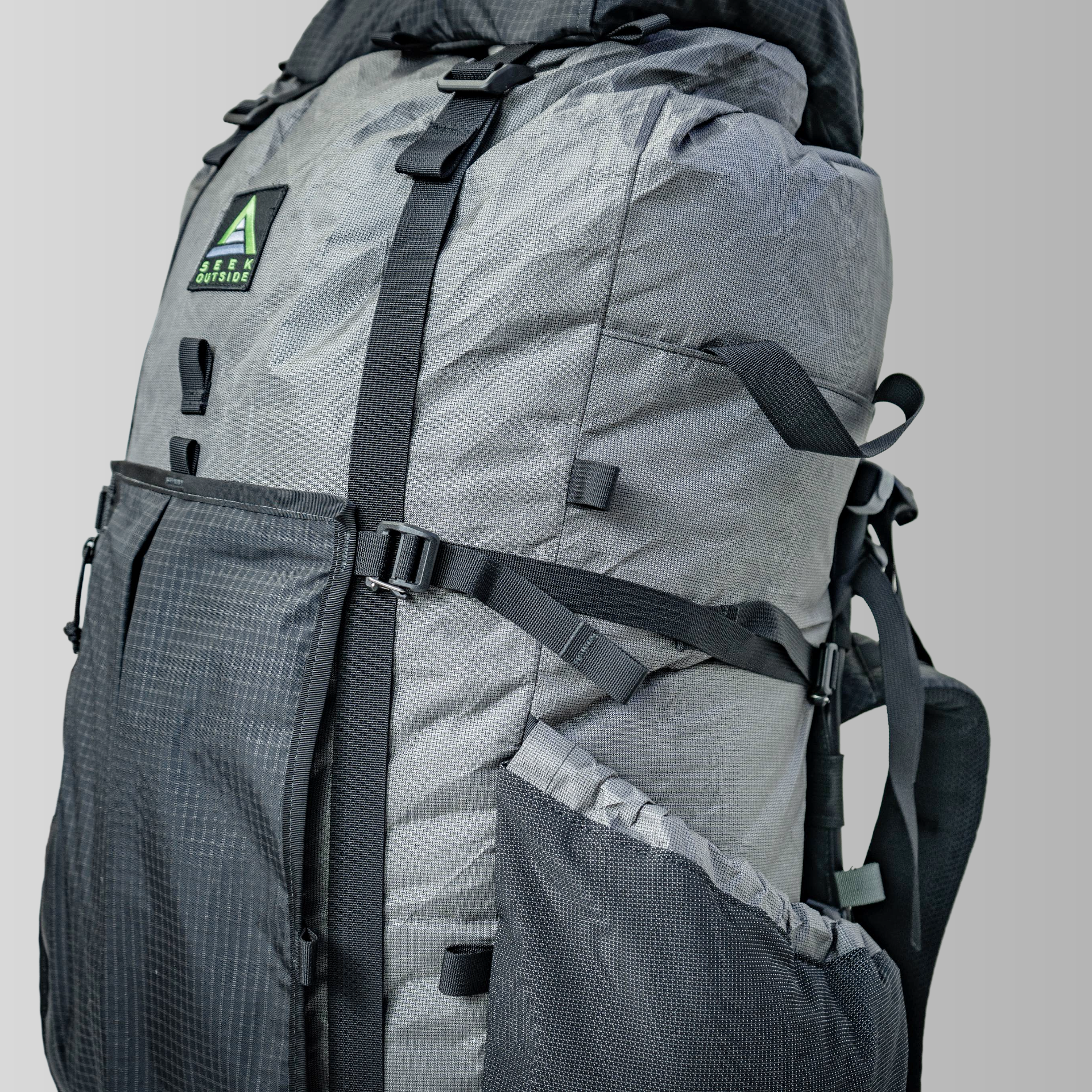 The Goshawk 6300 is big enough for a 7 to 10 day trip in cold weather, but compresses into a tight daypack using our gatekeeper compression straps. Featuring two tall side pockets, and a two way side zipper access with rolltop closure, the Goshawk has simple organization and is highly water resistant. The included Top Lid and Talon System help to round out your organizational needs. For lightweight trips requiring less organization or compression use it without the Talon and Top Lid for a light and sleek setup. The Revolution frame is the center of the Goshawk and is completely removable from the pack bag and can be used as a load hauler for dry bags or for hunting. Loads can be put in between the Goshawk pack bag and the Revolution frame.